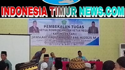Sulut — Indonesiatimurnews.com ” Dr.Drs H.Ulias Taha M.Pd selaku kepala kantor wilayah kementerian agama provinsi Sulawesi Utara membuka langsung Pembekalan Tugas Ketua Rombongan dan ketua Regu (KAROM dan KARU) Jemaah Haji Tahun 1446 H / 2025 Masehi, yang bertempat di Aula Asrama haji Tuminting Manado Provinsi Sulawesi Utara berjalan dengan baik dan penuh Hikma pada hari jumat tanggal 2-5-2025 dari jam 10.00 wita sampai dengan Selesai.