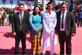 Pada penurunan bendera yang bertindak sebagai Inspektur upacara Wakil Walikota Bitung, Randito Maringka dihadiri dari unsur FORKOPIMDA dan para tamu undangan, ucapan syukur kepada Tuhan Yesus Kristus, dan terima kasih kepada, Tirso Mamadoa, kepala sekolah SMA Negeri 2 Bitung Maxi Awondatu, S.Pd.,M.Pd., wali kelas X, Eduard Sambe, S.Pd., TNI, POLRI dan para pelatih, PURNA Paskibraka Kota Bitung serta seluruh unsur yang telah terlibat dalam kegiatan ini, ” Ujar Tetty orang tua wali dari Shalom Lepa, dengan penuh rasa syukur.