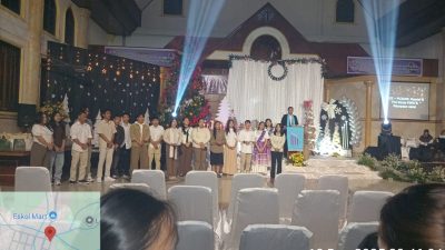 Tondano — Minahasa ” Indonesiatimurnews.com ” Perayaan Pra Natal Yesus Kristus Pemuda GMIM Jemaat Siloam Tonsealama Wilayah Tondano empat dibawah ketua Penatua Monica Kalalo, SPd, dilaksanakan penuh semarak dalam gemerlapan lampu yang warna warni membuat suasana terbawa dalam kegembiraan riang gembira. Dibawah sorotan tema Christmas Celebration, ” Born again trought the love of Christ” diawali dengan ucapan selamat datang oleh wakil ketua Tim Kerja Farly Pondaag selanjutnya Ibadah dipimpin oleh pendeta Joy Kindangen, STh.